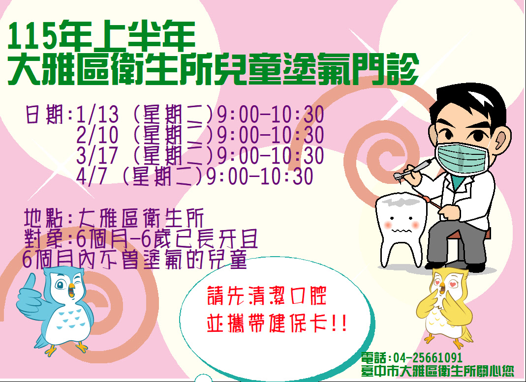 115 上半年衛生所塗氟門診時間表