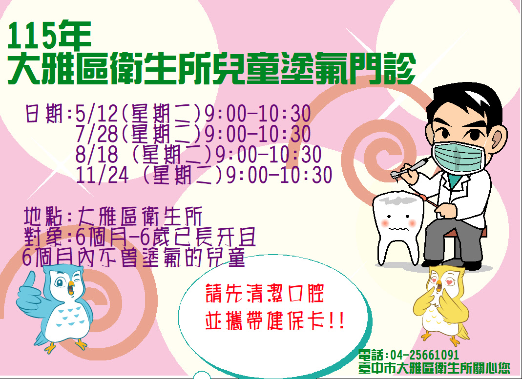 115 衛生所塗氟門診時間表